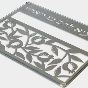 מגש לשבת נירוסטה וזכוכית דגם רימונים- ד. יודאיקה