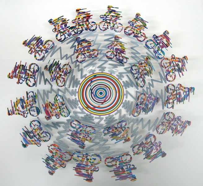 קערה 2 שורות רוכבי אופניים לתליה על הקיר או לעיצוב שולחן / שידה. מבטא השגיות והנאה.