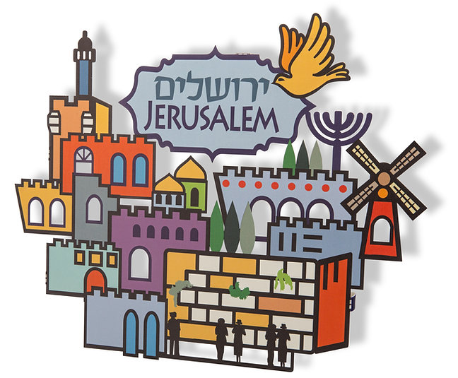 קישוט קיר -מגזרת מתכת צבעונית ירושלים / Jerusalem