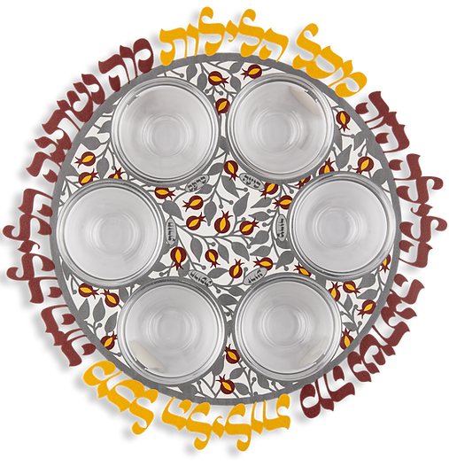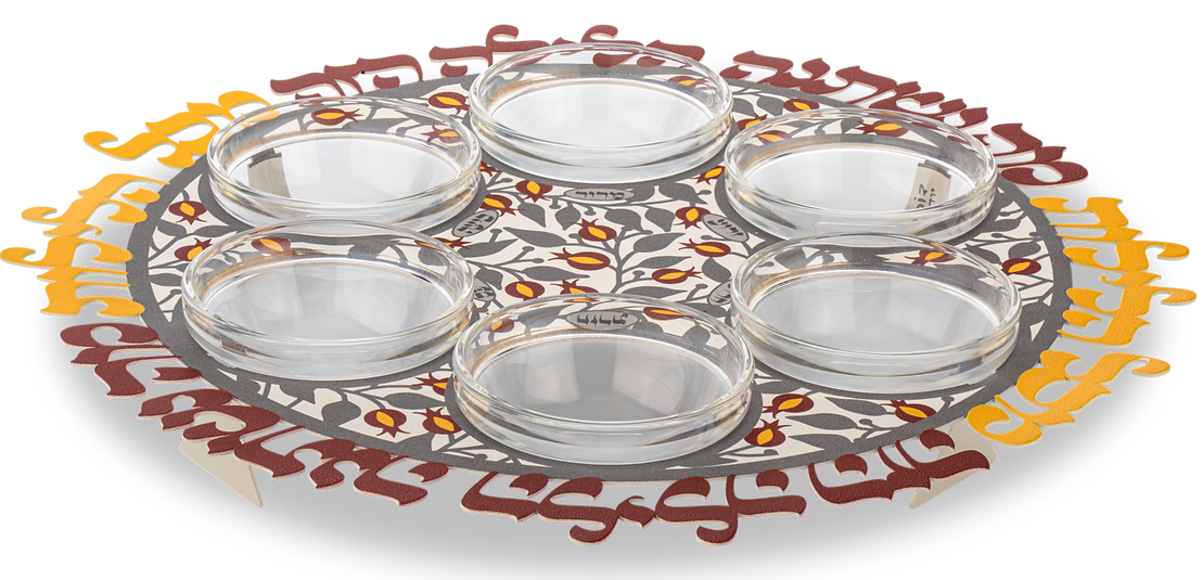 חדשה ומרשימה קערת סדר מתכת עם מגזרת כיתוב בהיקף.