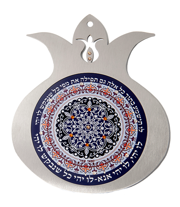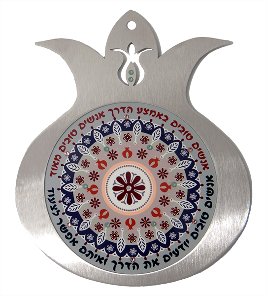 מגוון גדול של טקסטים וברכות בעברית, באנגלית , ושילוב של שתי השפות לבחירה רימוני קישוט עשויים מסגרת נירוסטה בשילוב הדפס צבעוני ואבני סברובסקי. הרימונים מעוטרים במוטיבים מהמסורת היהודית /ישראלית ובמנדלות צבעוניות, במגוון רחב של טקסטים וברכות.