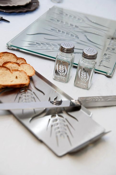 לכל המגשים פריטים תואמים – כיסוי חלה, מלח ופלפל, סכין חלה, תחתית להגשה חמה כיסוי לפלטה וגם קערת הגשה .